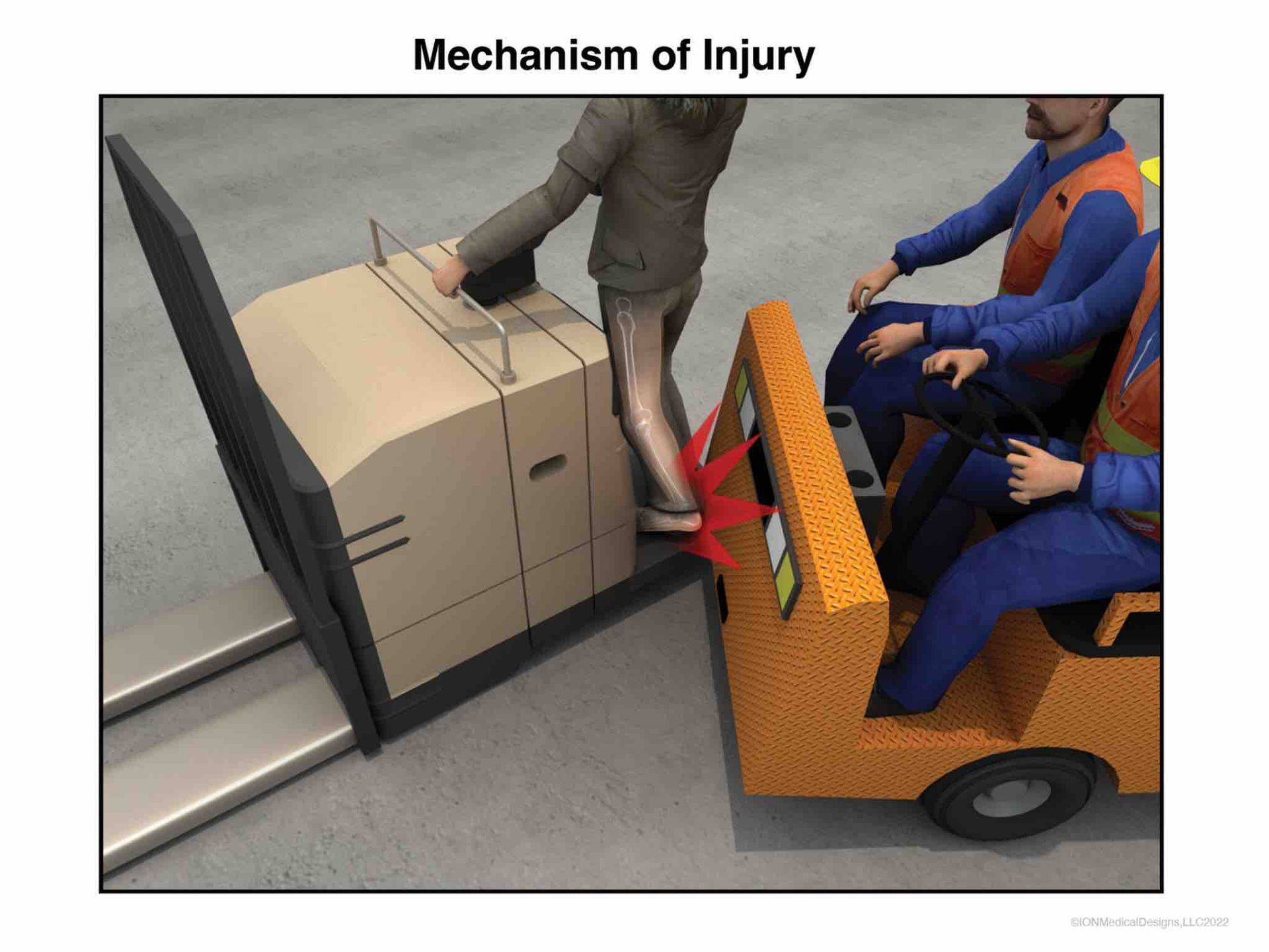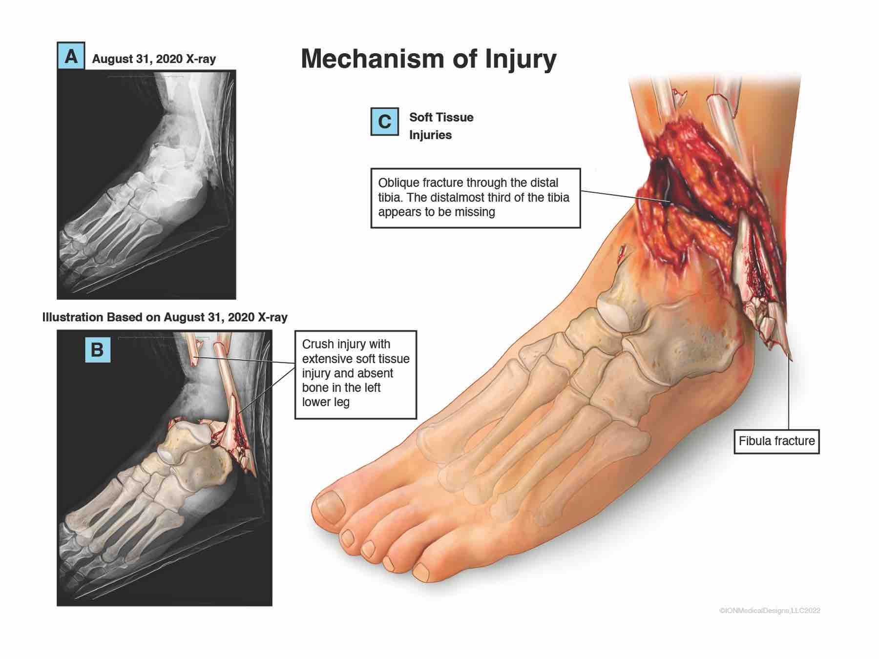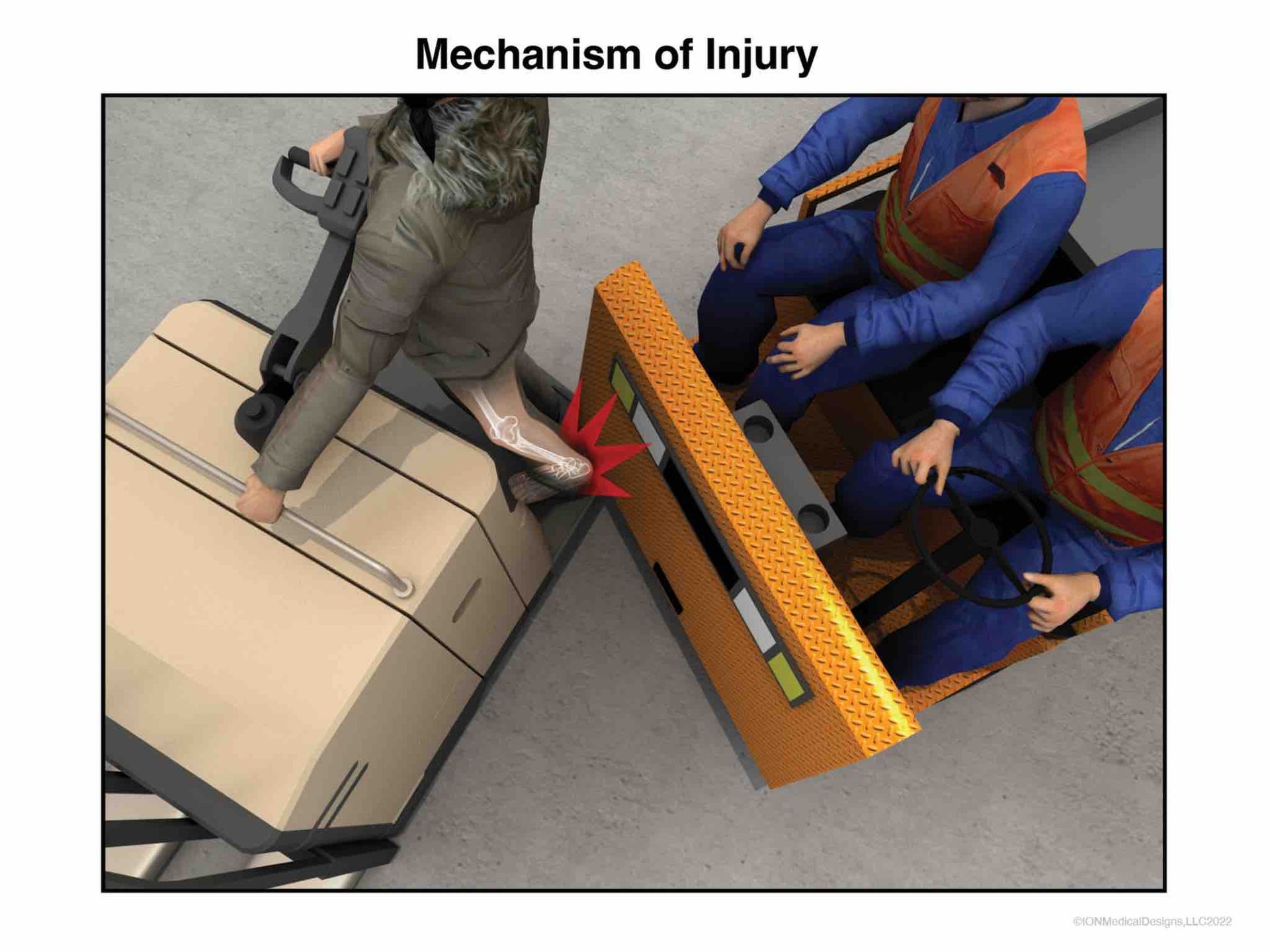 This illustration shows the victim's ankle after the forklift hit her.
