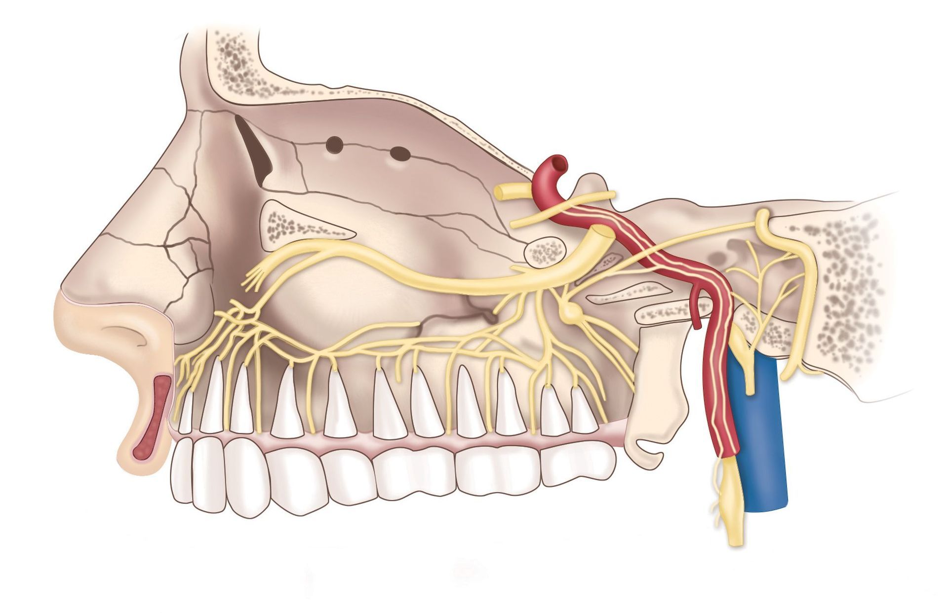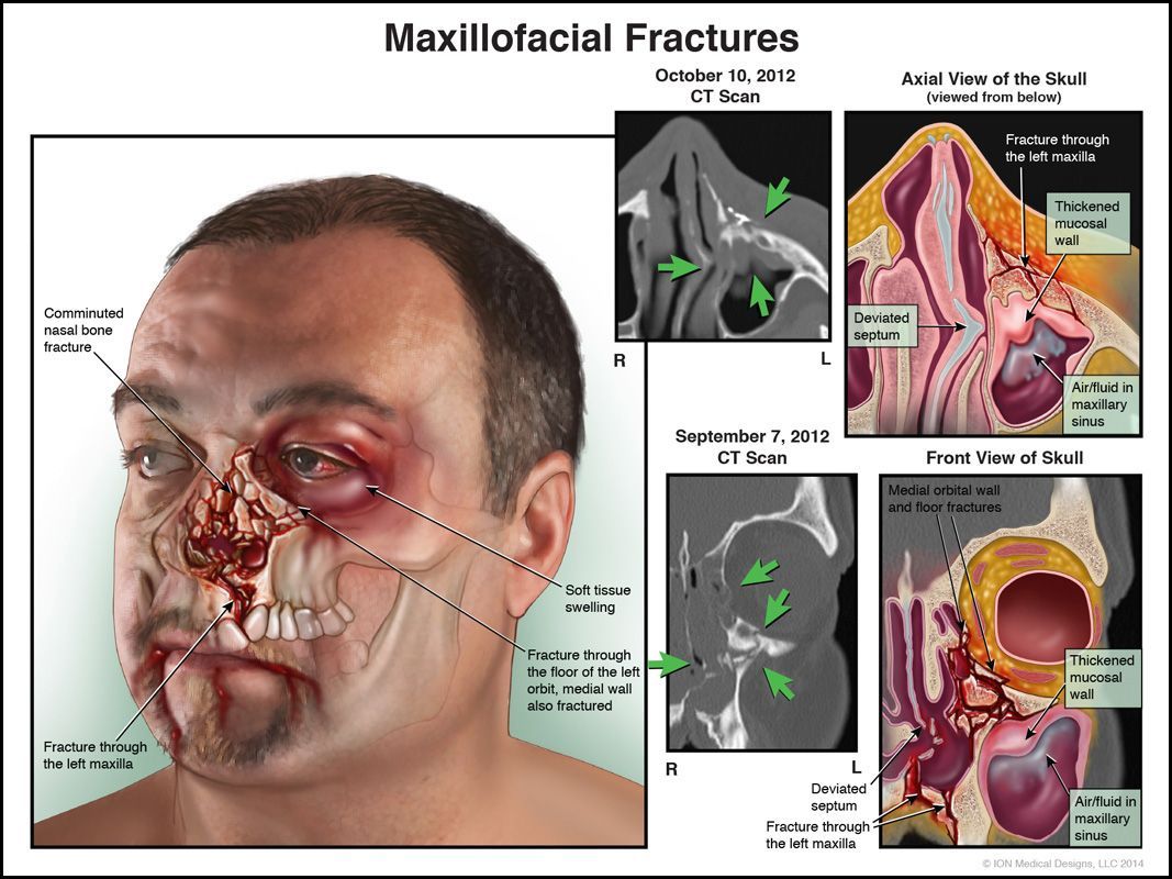 Medical legal demonstrative depicting facial fractures sustained from an industrial pressure hose accident.