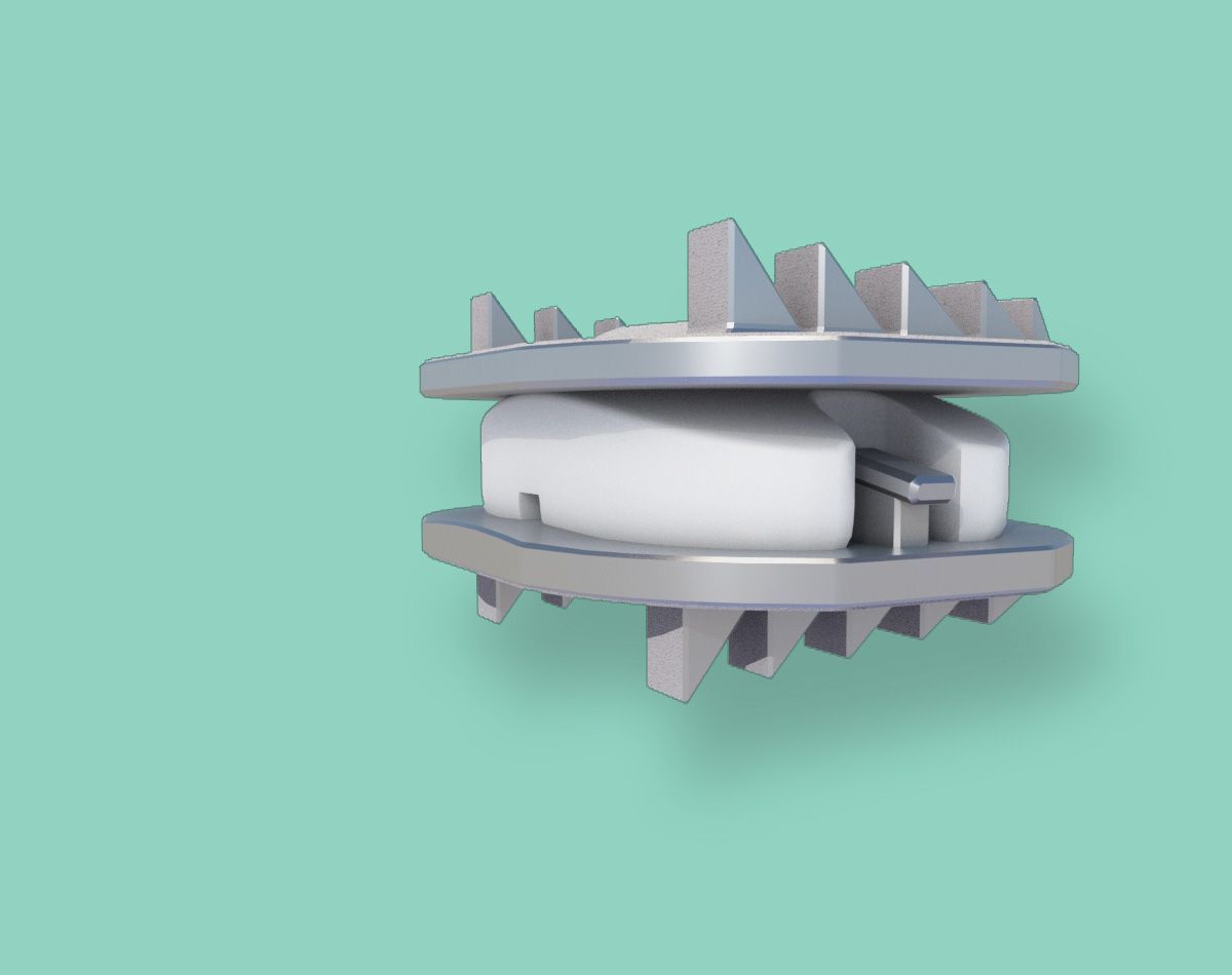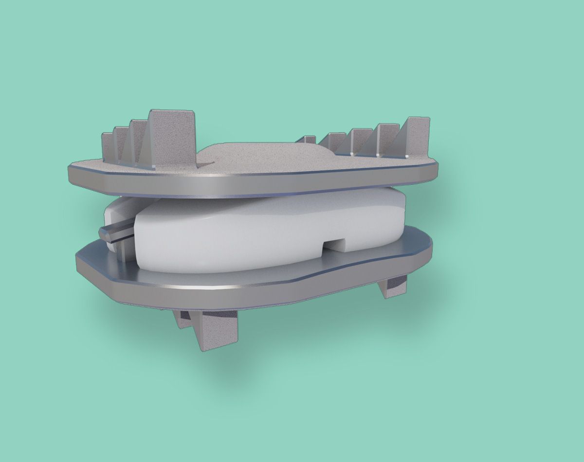 An artificial disc allows for flexion and extension of the spine.